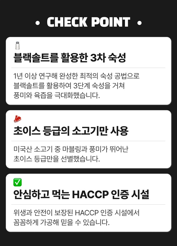 초이스 등급의 고품질 소고기만을 사용해 숙성했어요