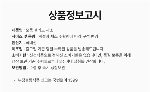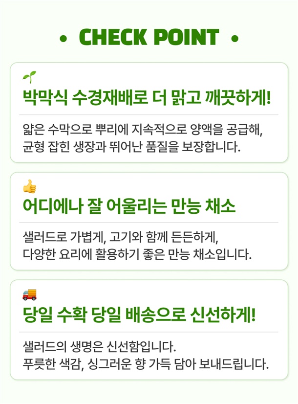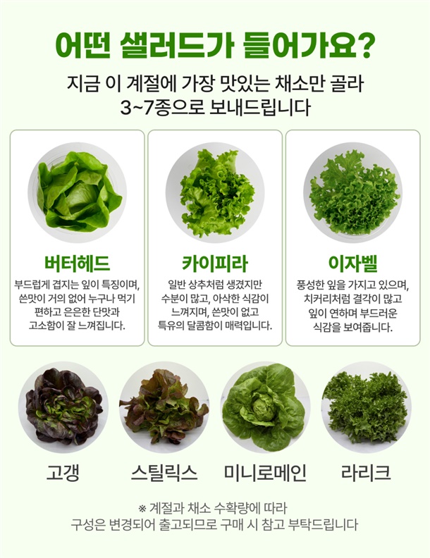 보내드리는 날 당일 새벽에 수확한 싱싱한 샐러드