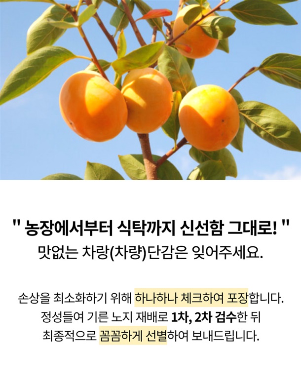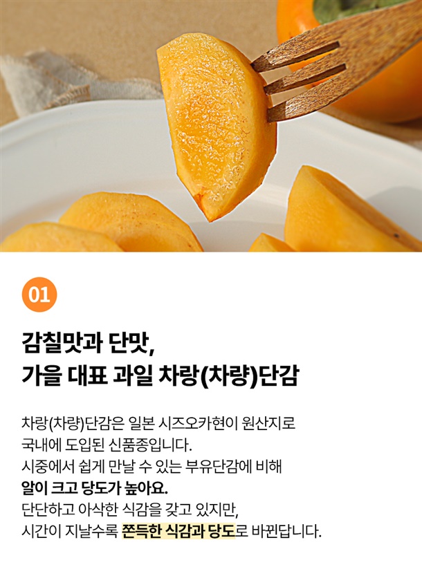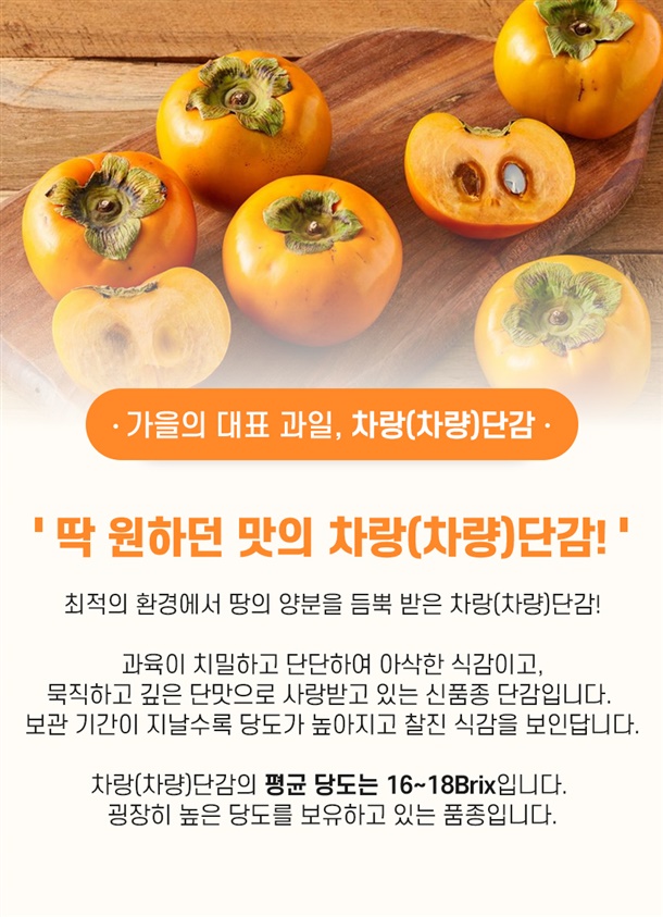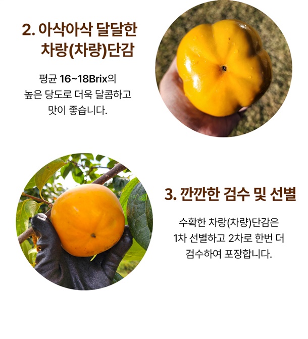 평균 당도 16~18브릭스를 자랑하는 고당도 단감
