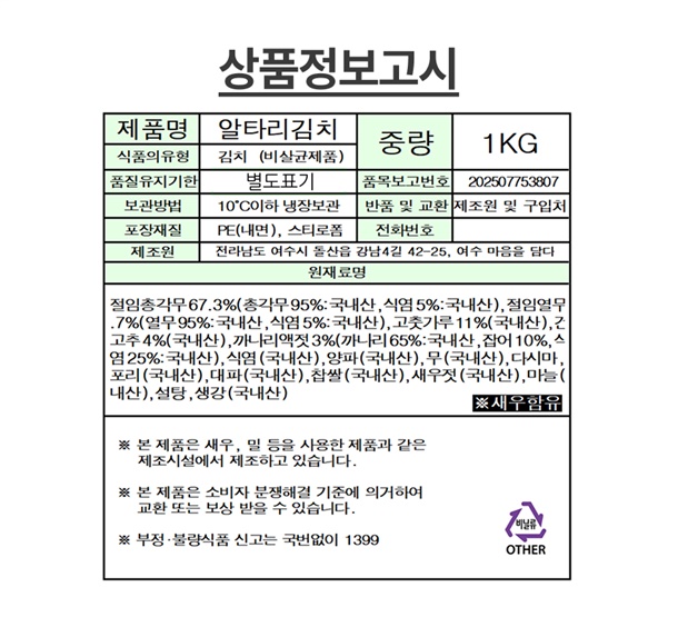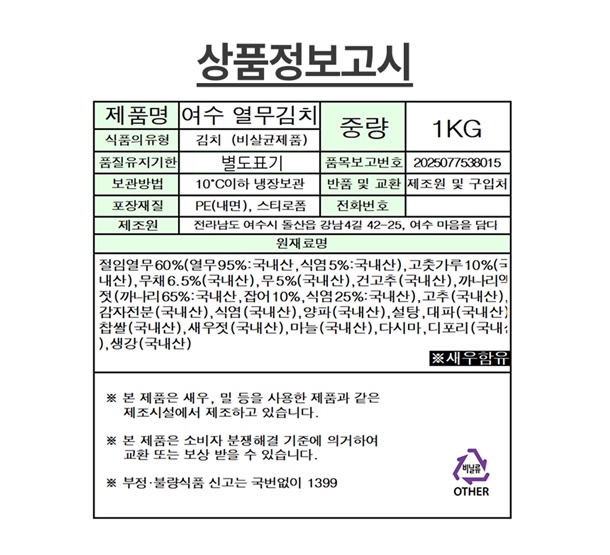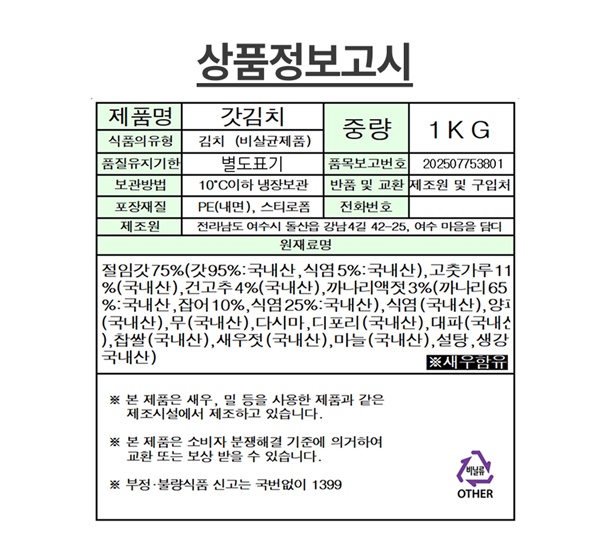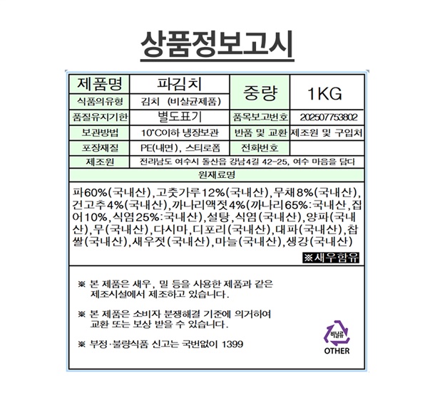 발송당일 아침 바로 버무려 보내드립니다