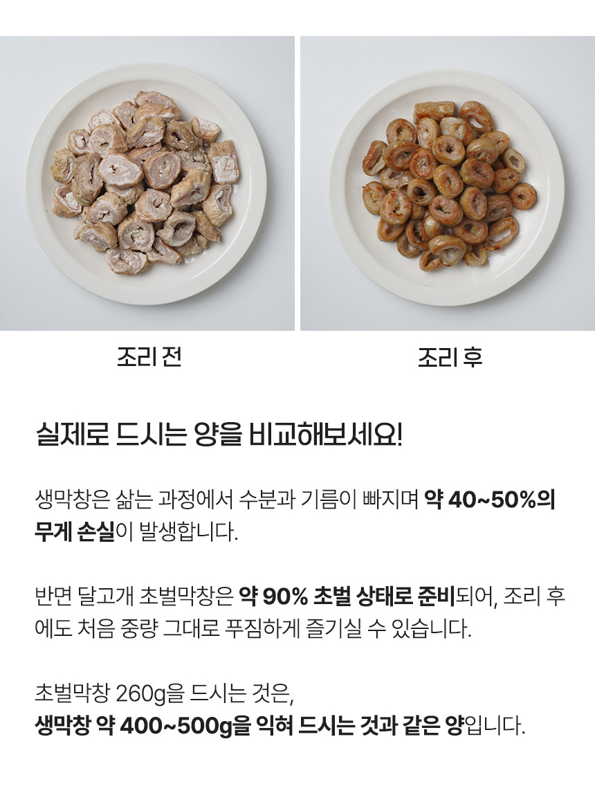 이미 구운 무게가 260g으로, 생막창 400~500g랑 같은 양!