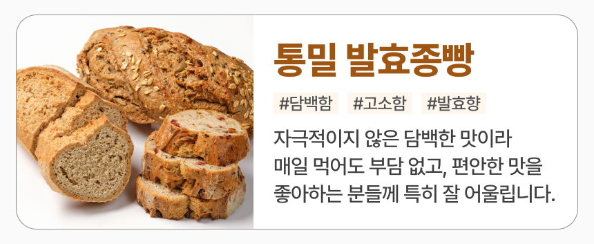 통밀의 묵직한 풍미가 가득! 빵을 더 건강하게 즐겨요!