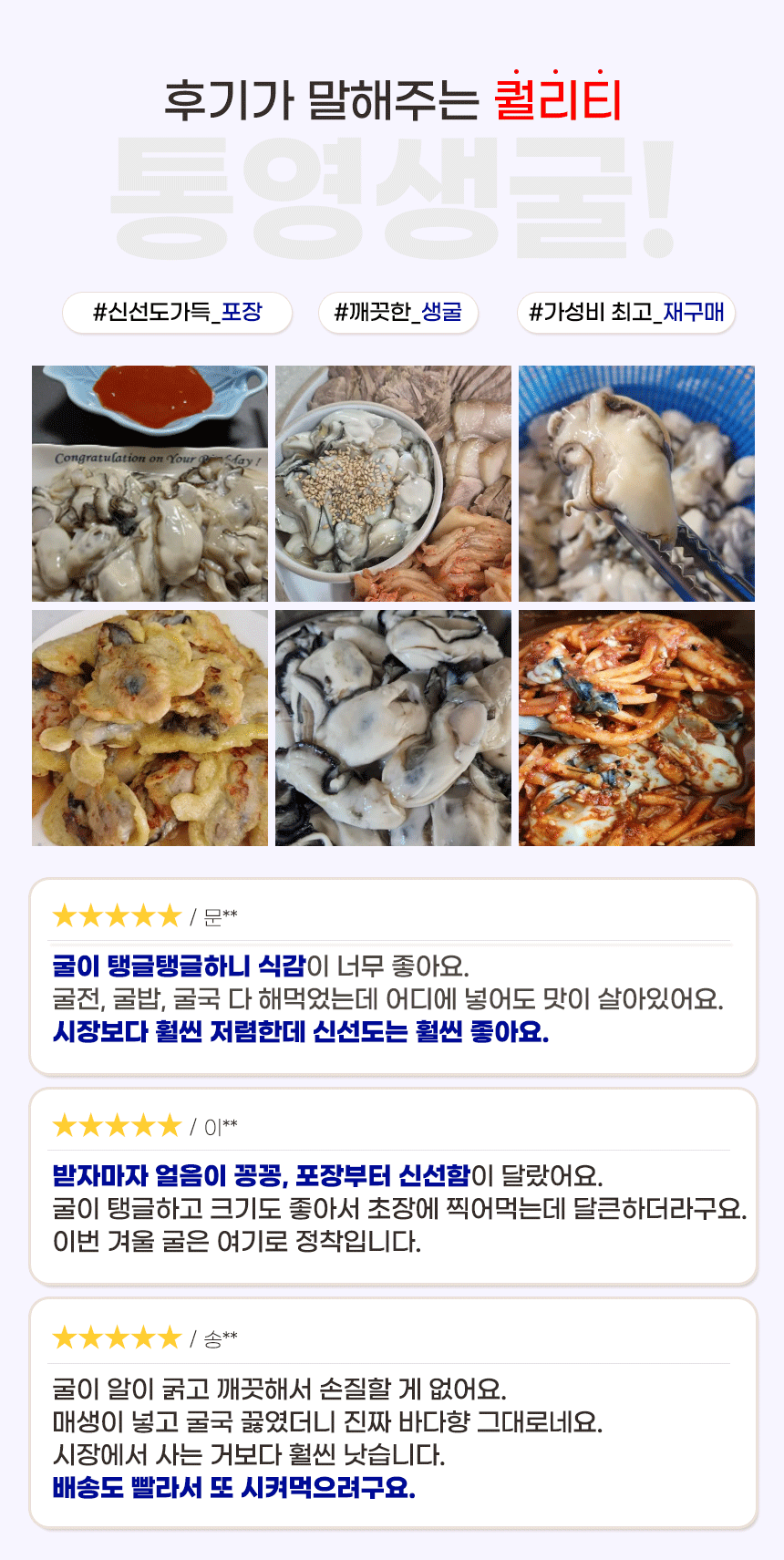 당일조업, 당일발송 원칙으로 오직 싱싱한 굴만 보내드려요