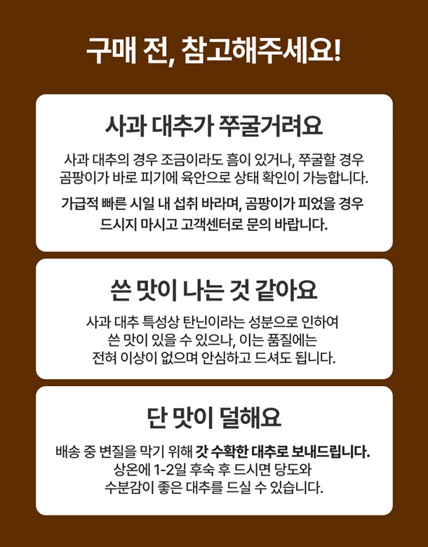 · 상품 불량 사유와 사진을 남겨 주시면 빠른 처리가 가능합니다.