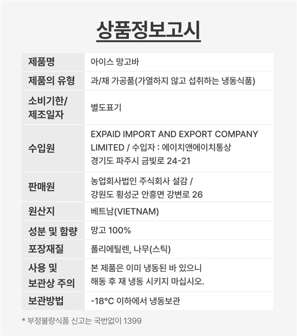 첨가물 없이 망고 그대로 얼린 천연간식