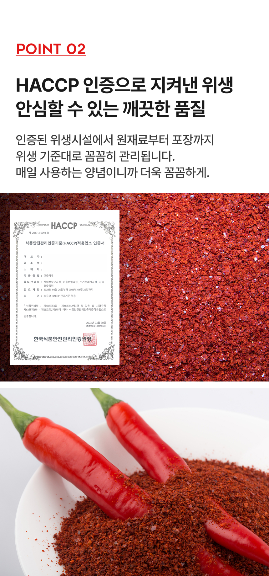HACCP 인증시설에서 깨끗하게 빻은 고춧가루