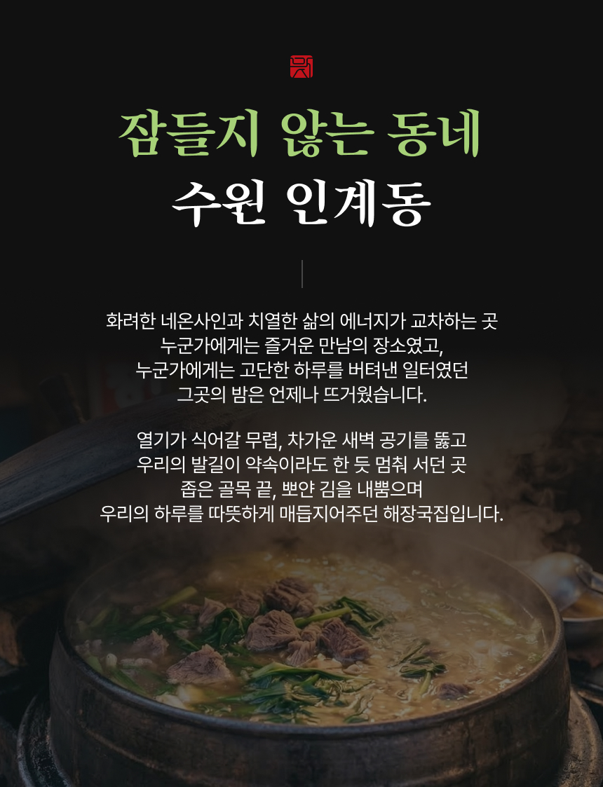 맛꾼에서 만든 수원 인계동식 해장국! 국물이 맑은데 칼칼한 감칠맛이 별미에요!