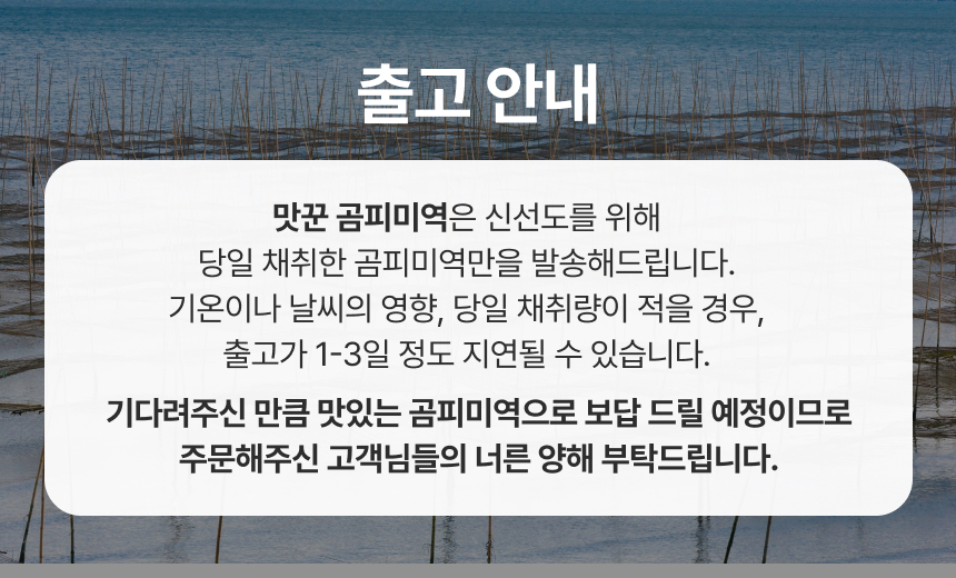 · 단, 기상 및 재고상황에 따라 배송지연이 발생할 수 있습니다.