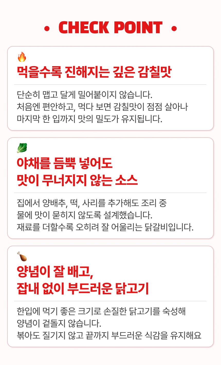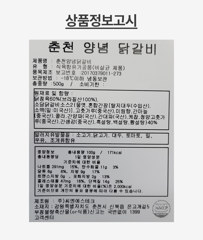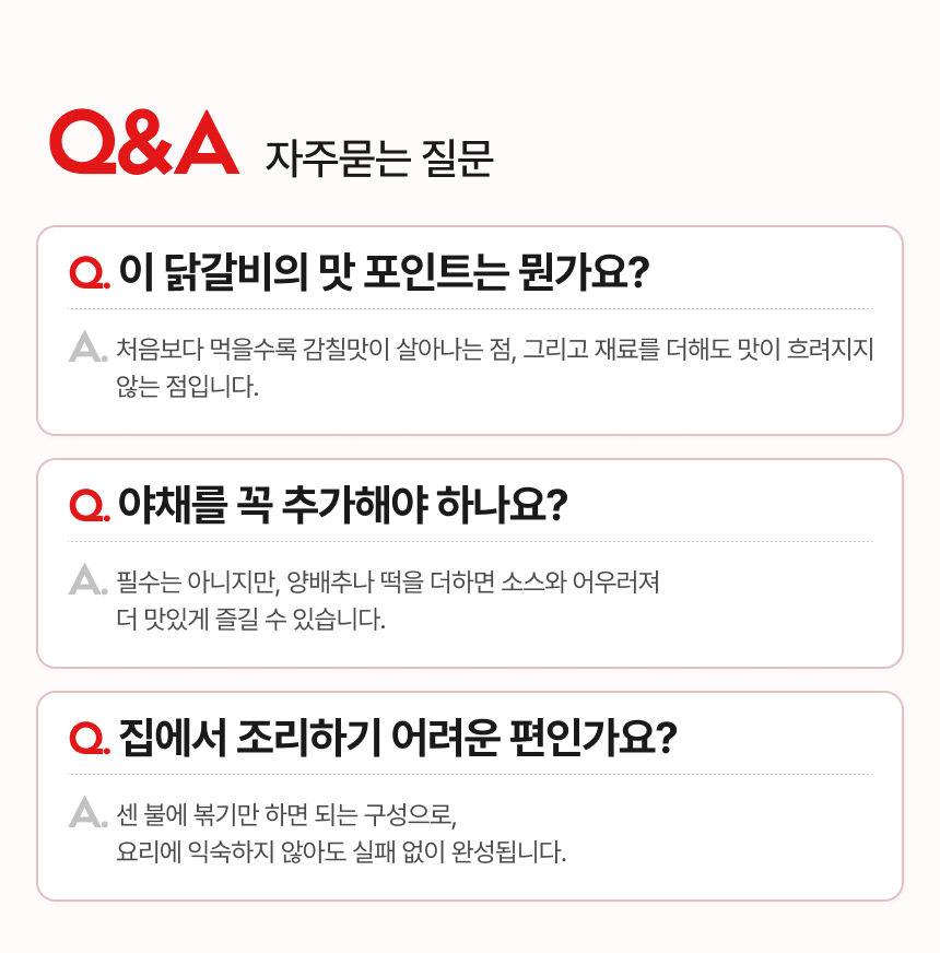 뜯고 익히기만 하면 춘천가서 먹는 닭갈비 맛 그대로!