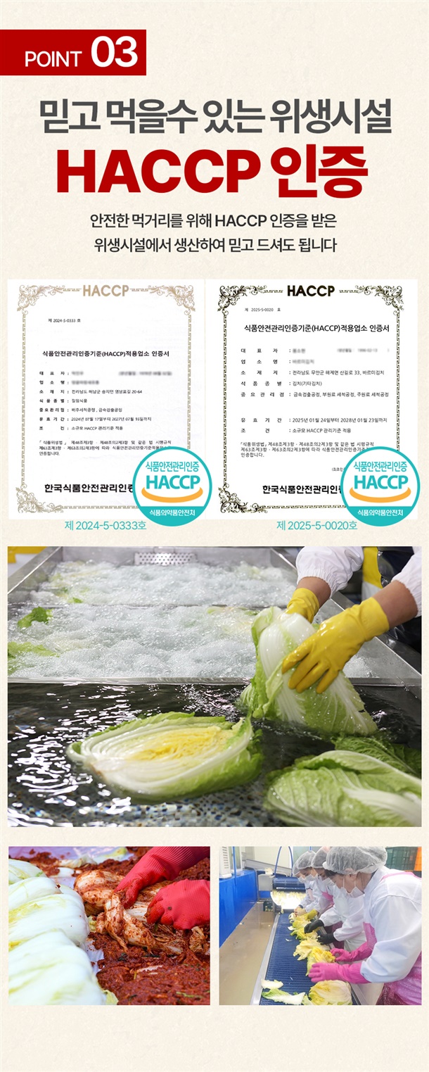 HACCP 인증받은 청결한 제조시설에서 만들고 있습니다