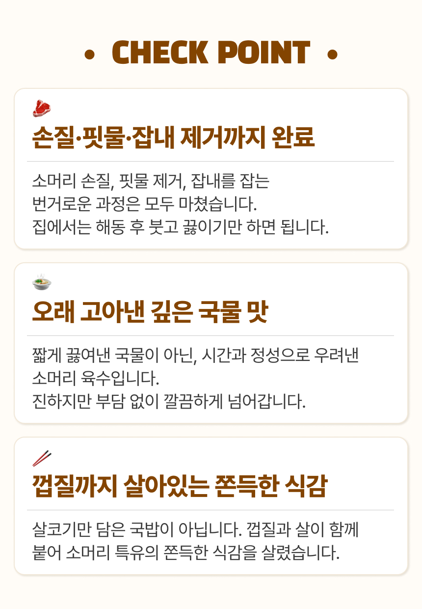 시간들여 끓어낸 육수가 기름지지 않게, 맑고 개운해요!