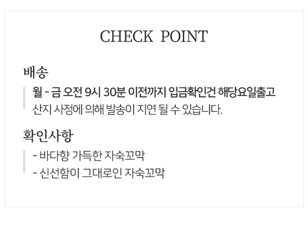 · 단, 기상 및 재고상황에 따라 배송지연이 발생할 수 있습니다.
