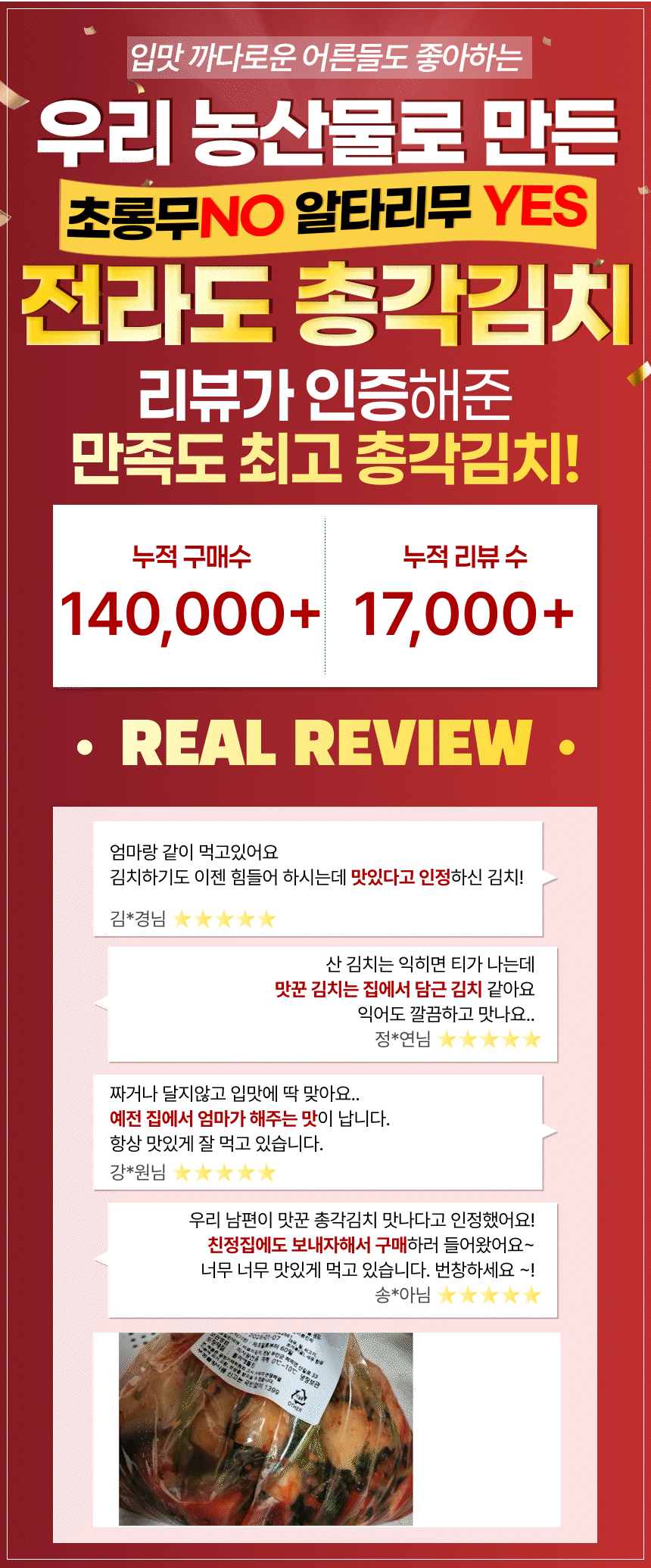 누적구매 14만 건 돌파! 구매수가 인증하는 진짜 맛있는 김치👍