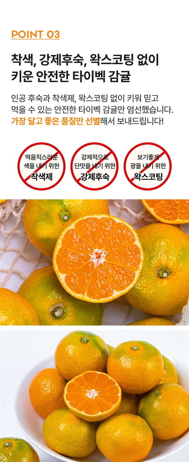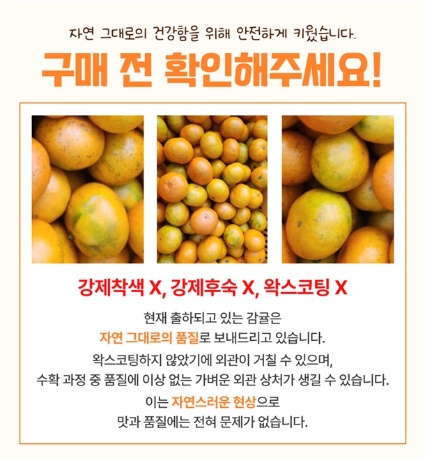 인위적인 왁스코팅 없이 자연스럽게 키운 건강한 제주감귤