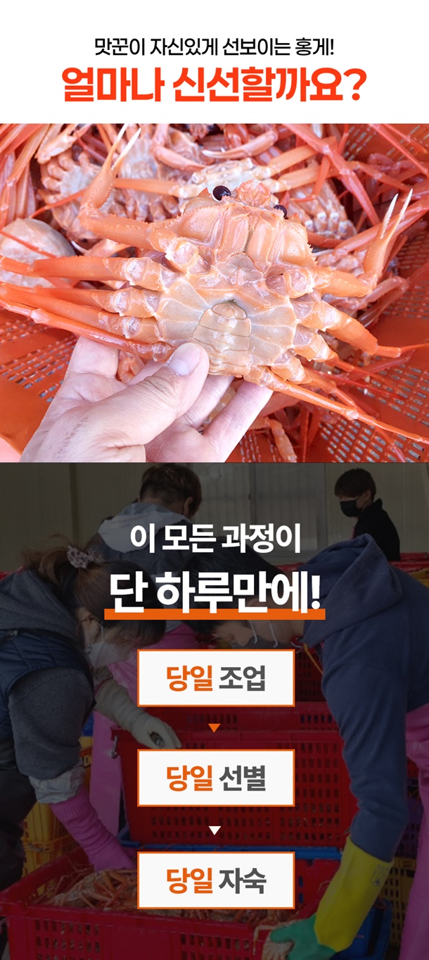 당일조업▶당일선별▶당일자숙하여 보내드려요