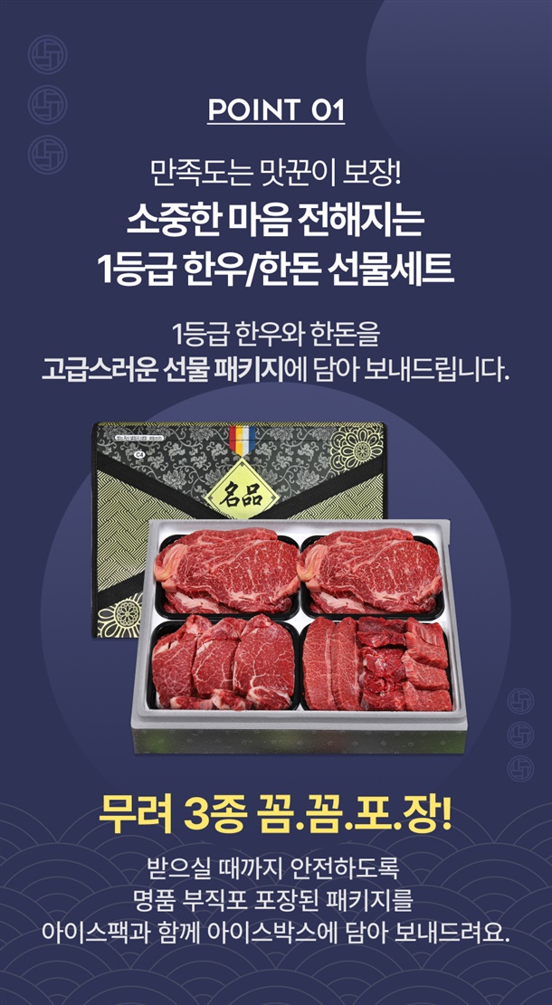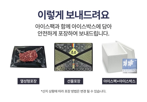 열성형 포장+아이스박스+외부 선물포장으로 안전하고 보기 좋게 보내드려요