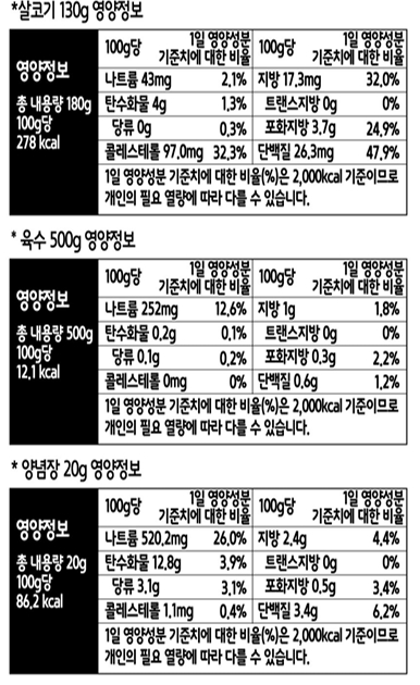 | 보관방법 | 냉동보관(육수,고기,양념장) |