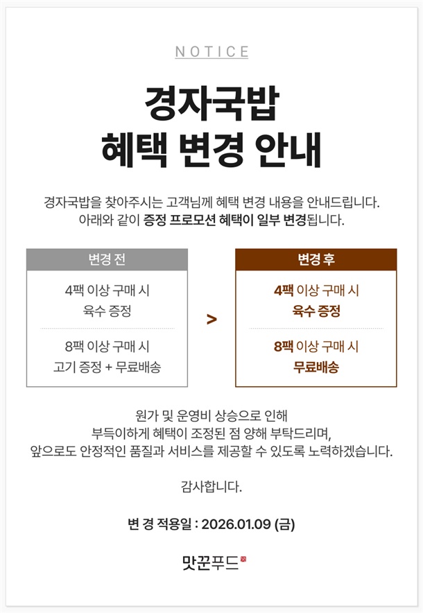 8팩 구매 > 육수 1팩 증정 + 무료배송