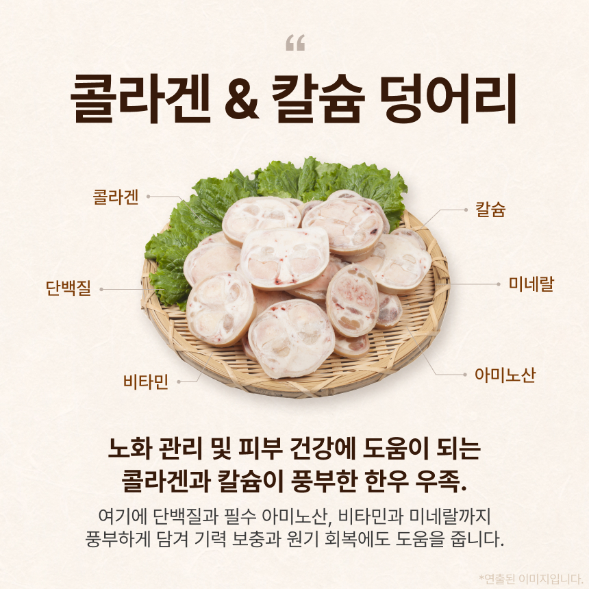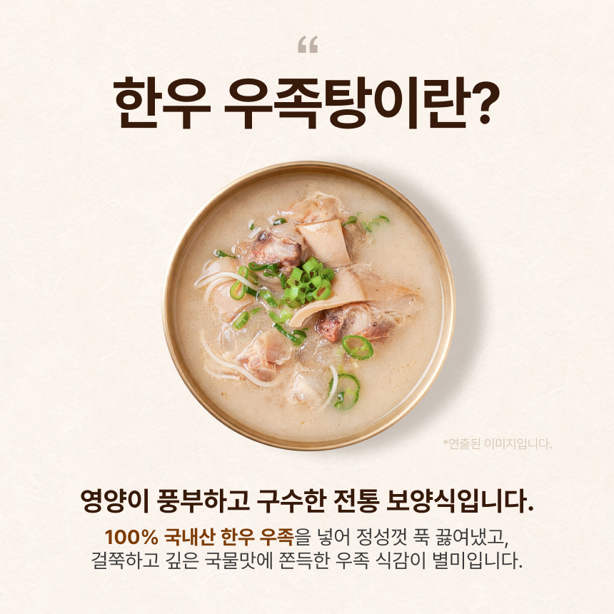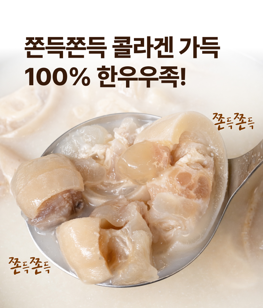 100% 한우 우족 고기가 듬뿍 들어가 진하고 푸짐합니다.