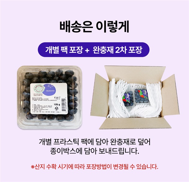 한국에 막 도착한 탱탱한 블루베리로 보내드려요