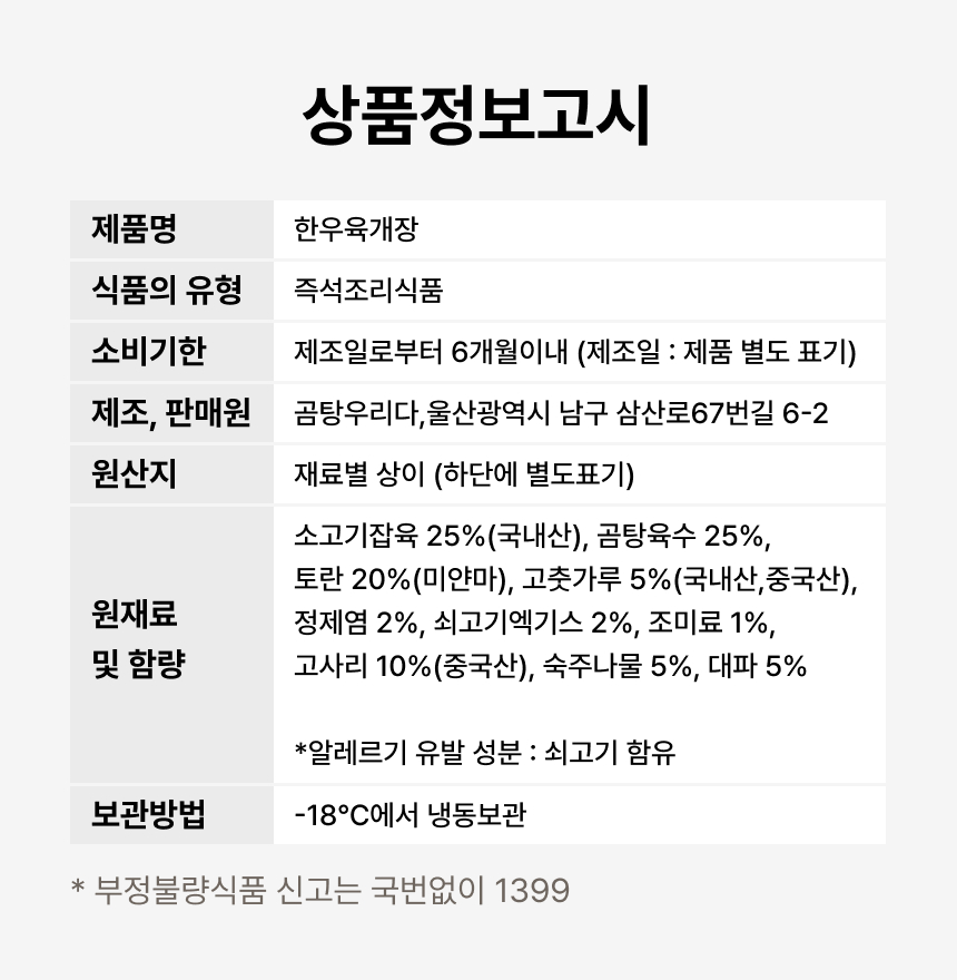 깊은 감칠맛의 한우 사골 육수와 다양한 재료가 듬뿍 들어간 가성비 육개장!