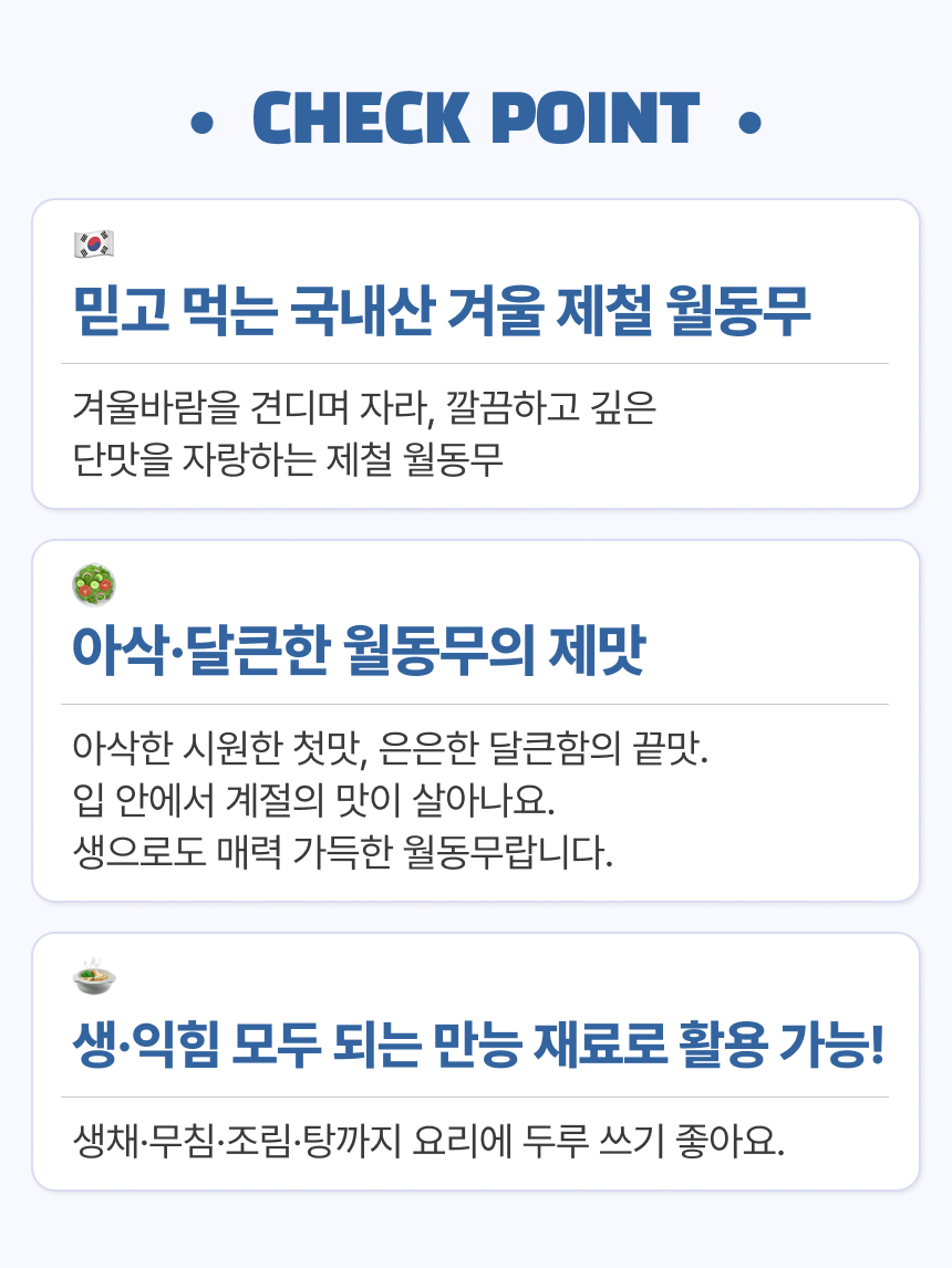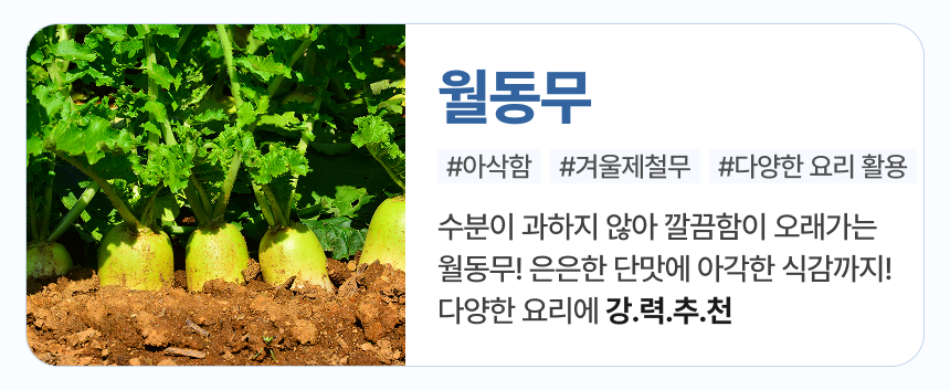 지금 제철인 월동무! 신선하고 은은한 단맛이 일품이에요!