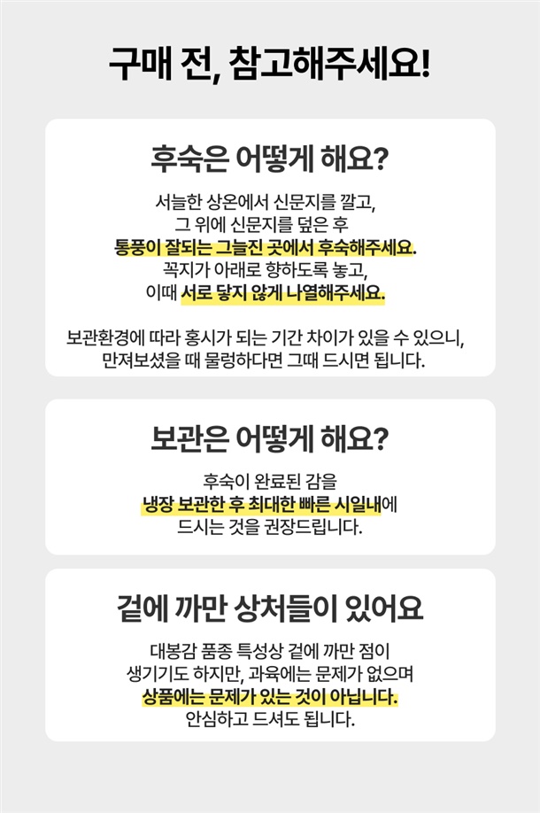 딱딱한 상태로 보내드리니 집에서 후숙 후 드시면 됩니다