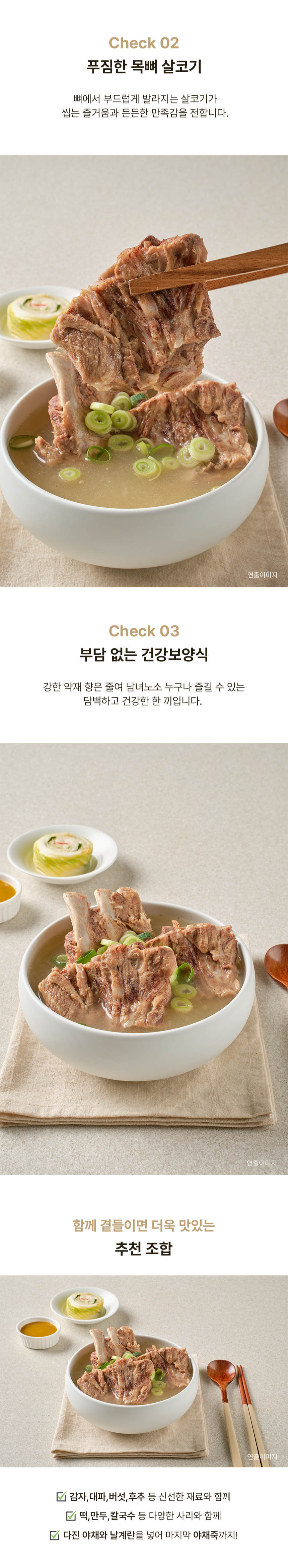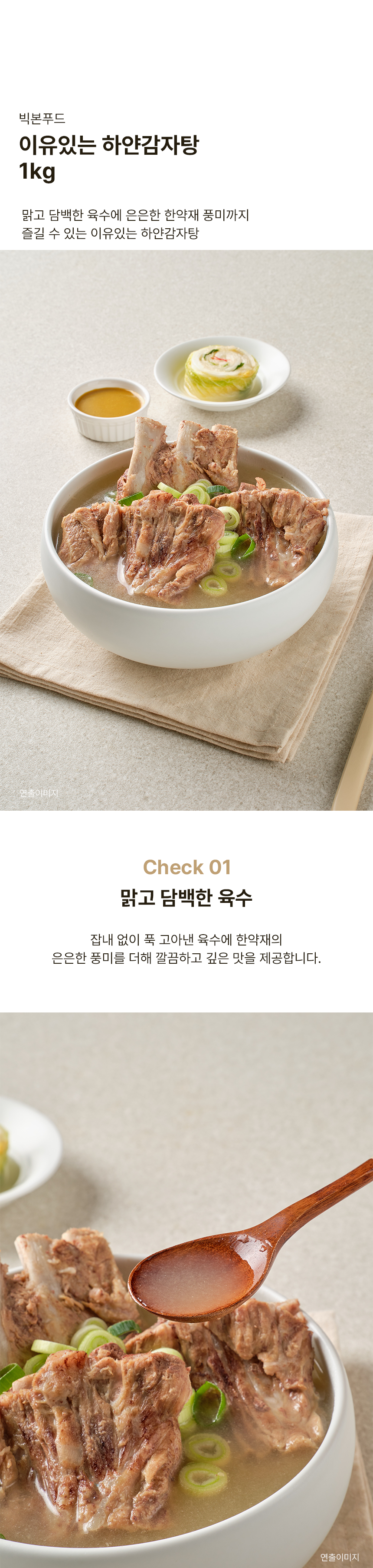 감자탕의 풍미는 그대로, 자극적인 매운 맛은 없앤 맑은 국물이에요