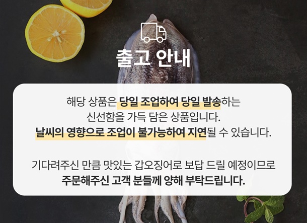 · 단, 기상 및 재고상황에 따라 배송지연이 발생할 수 있습니다.